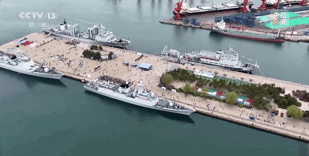4月23日,人民海军迎来成立77周年纪念日。当天,山东青岛的青岛港与奥帆中心两座码头同时面向公众开放六艘舰艇,其中包括驱逐舰、护卫舰、远洋救生船和综合补给舰。在奥帆中心,市民和游客还可登船参观两艘海军现役主力舰:052D型导弹驱逐舰乌鲁木齐舰和054A型导弹护卫舰潍坊舰。